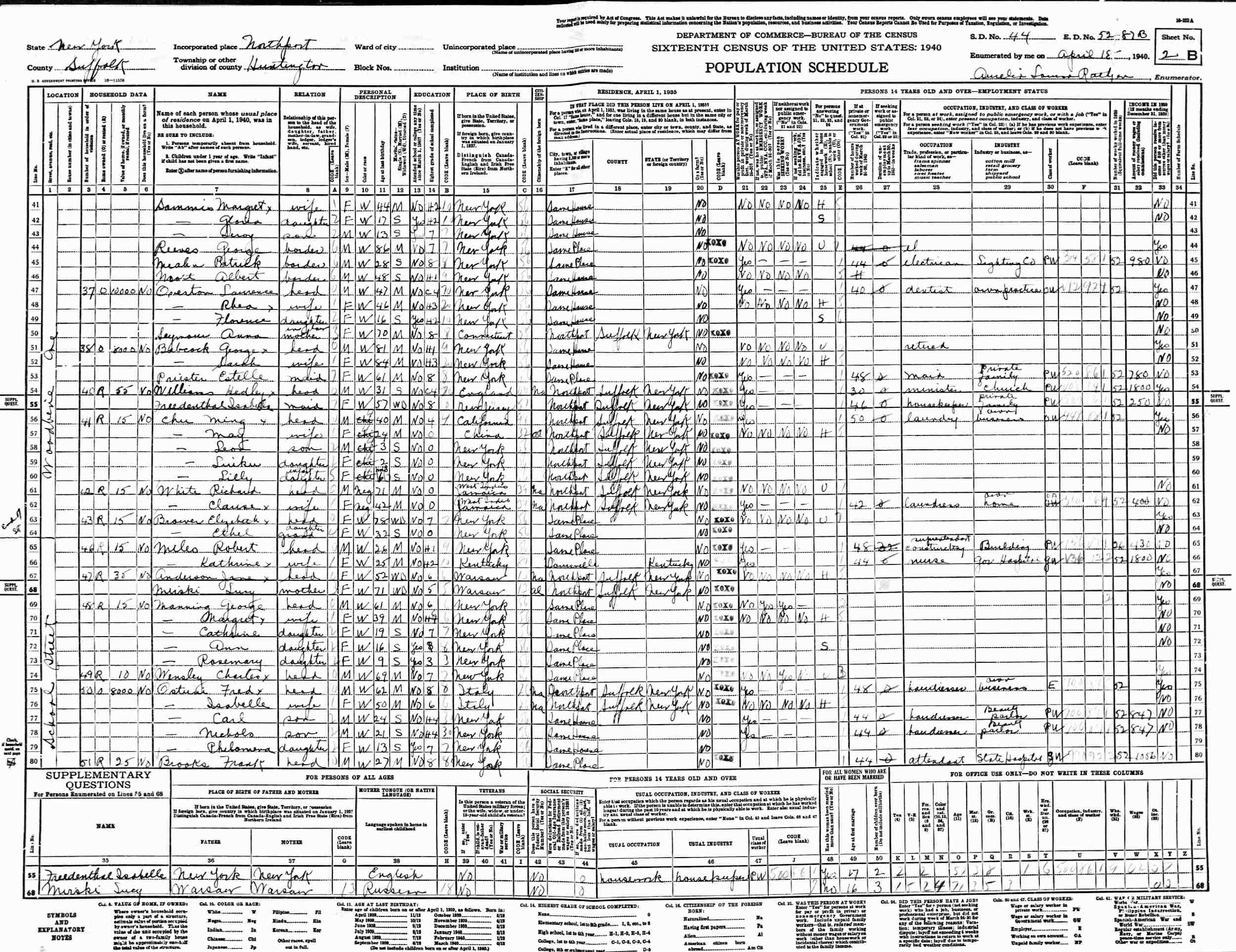 April 18, 1940 - Woodbine Avenue, Supervisor's District 44, Enumeration District 52-87B, Northport, Huntington, Suffolk County, New York.