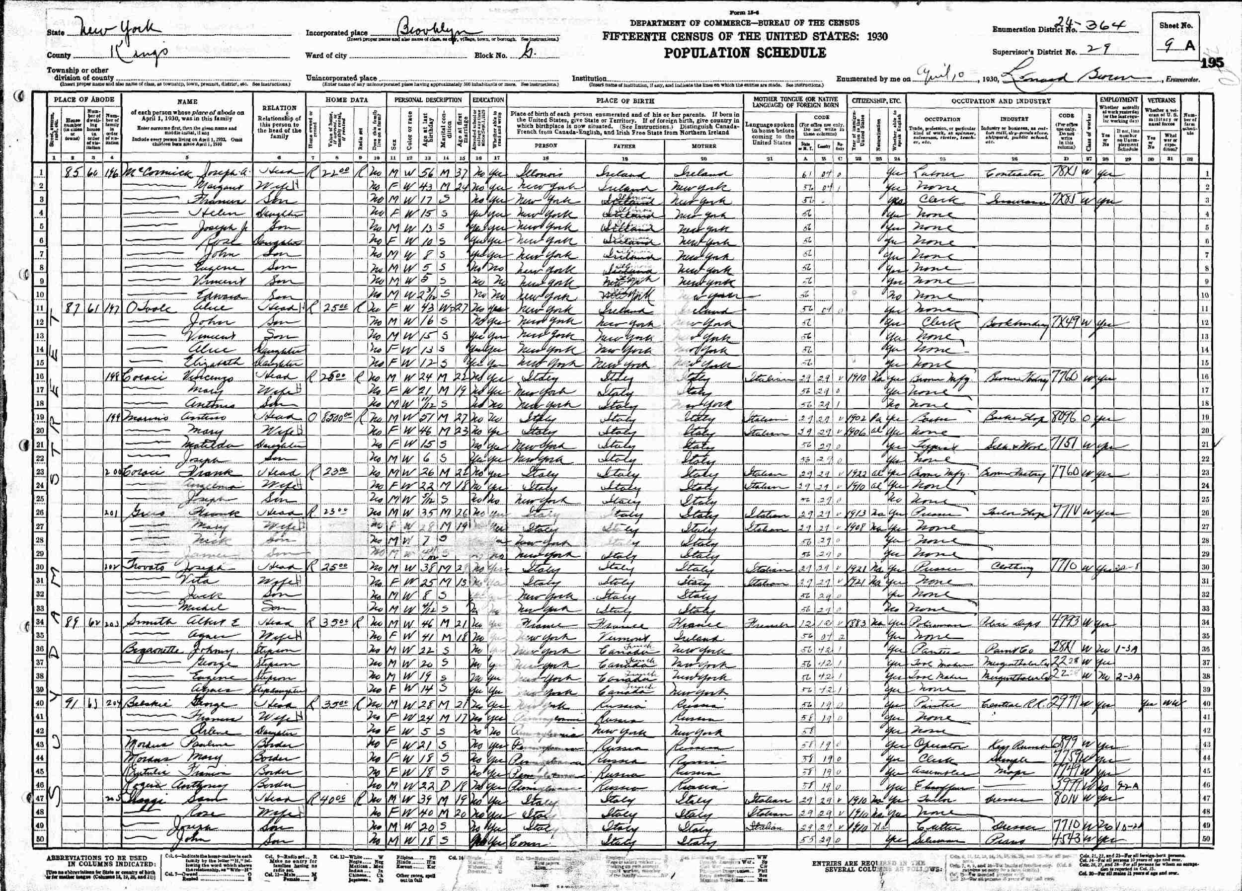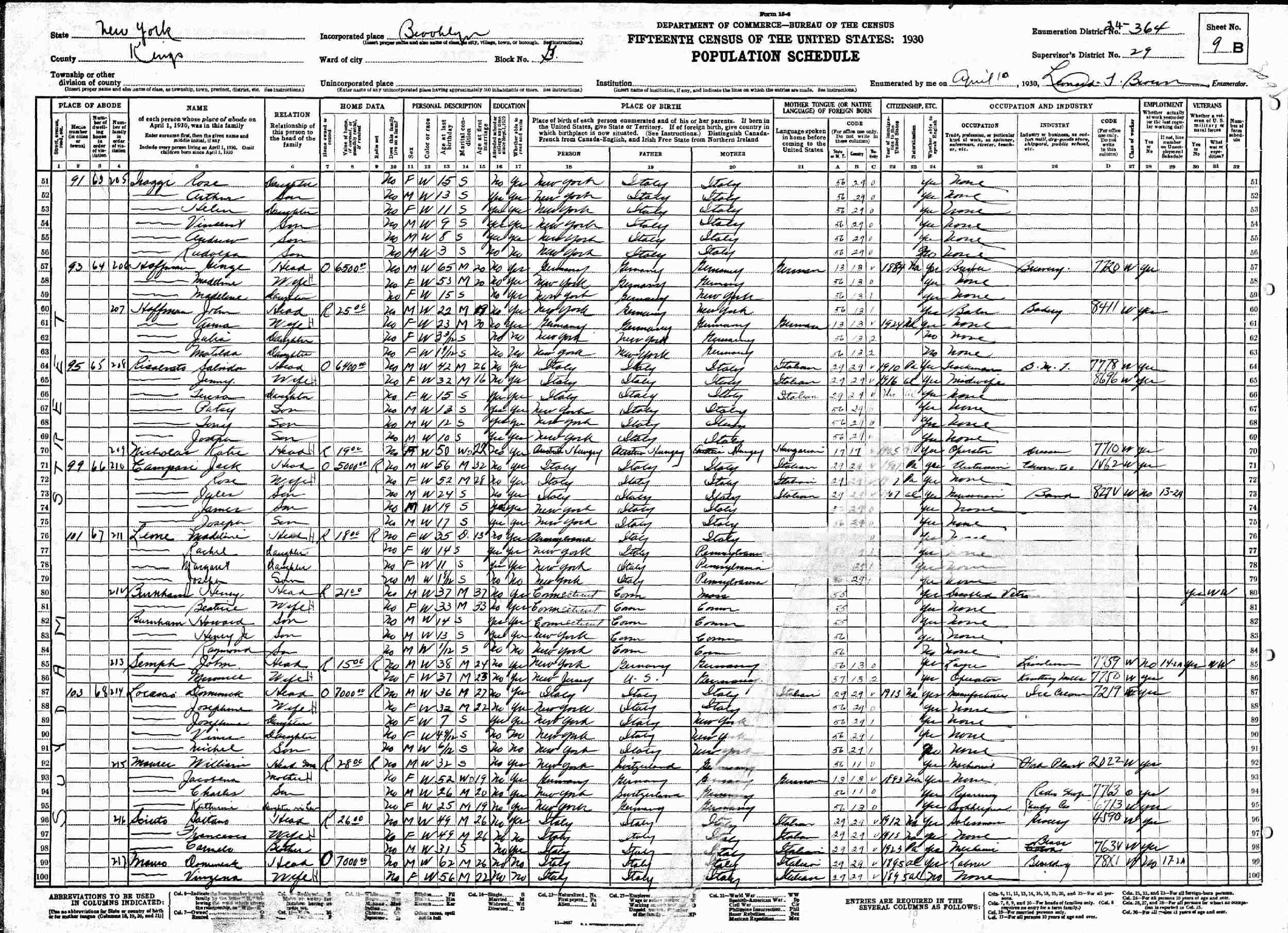 April 10, 1930 - 91 Suydam Street, Block G, Supervisor's District 29, Enumeration District 24-364, Brooklyn, Kings County, New York.