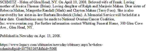 Died: April 10, 2008 in Glen Head, Nassau County, New York.