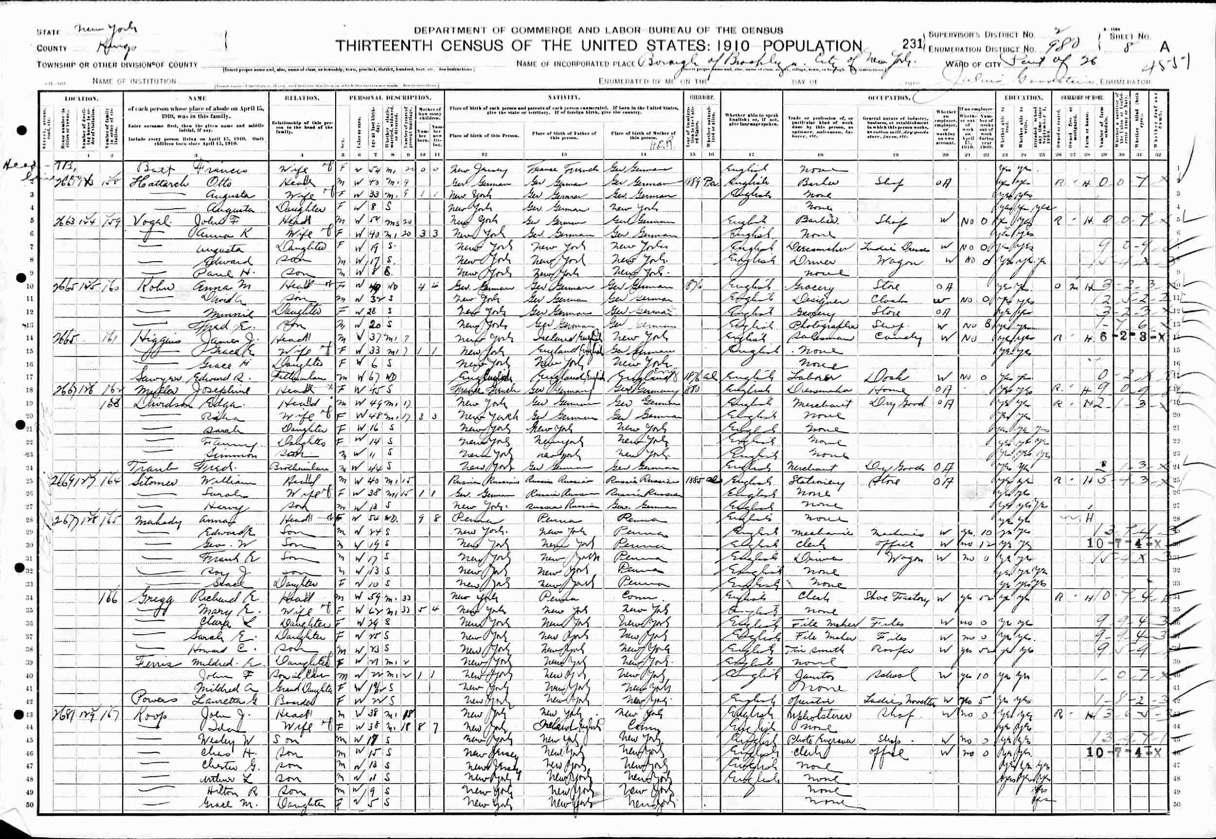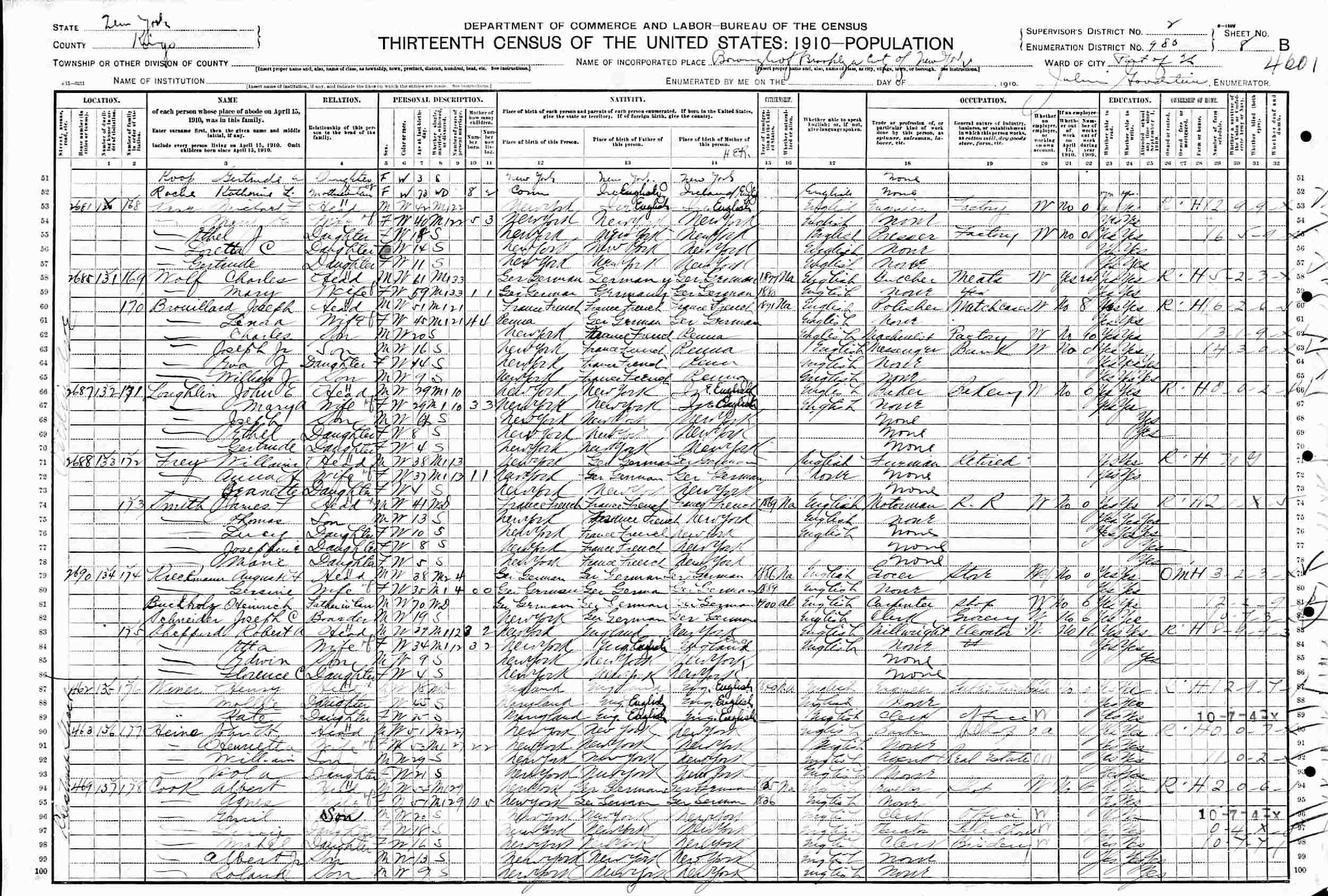 1910 - 2681 Pitkin Avenue, Ward 26, Supervisor's District 2, Enumeration District 980, Brooklyn, Kings County, New York.