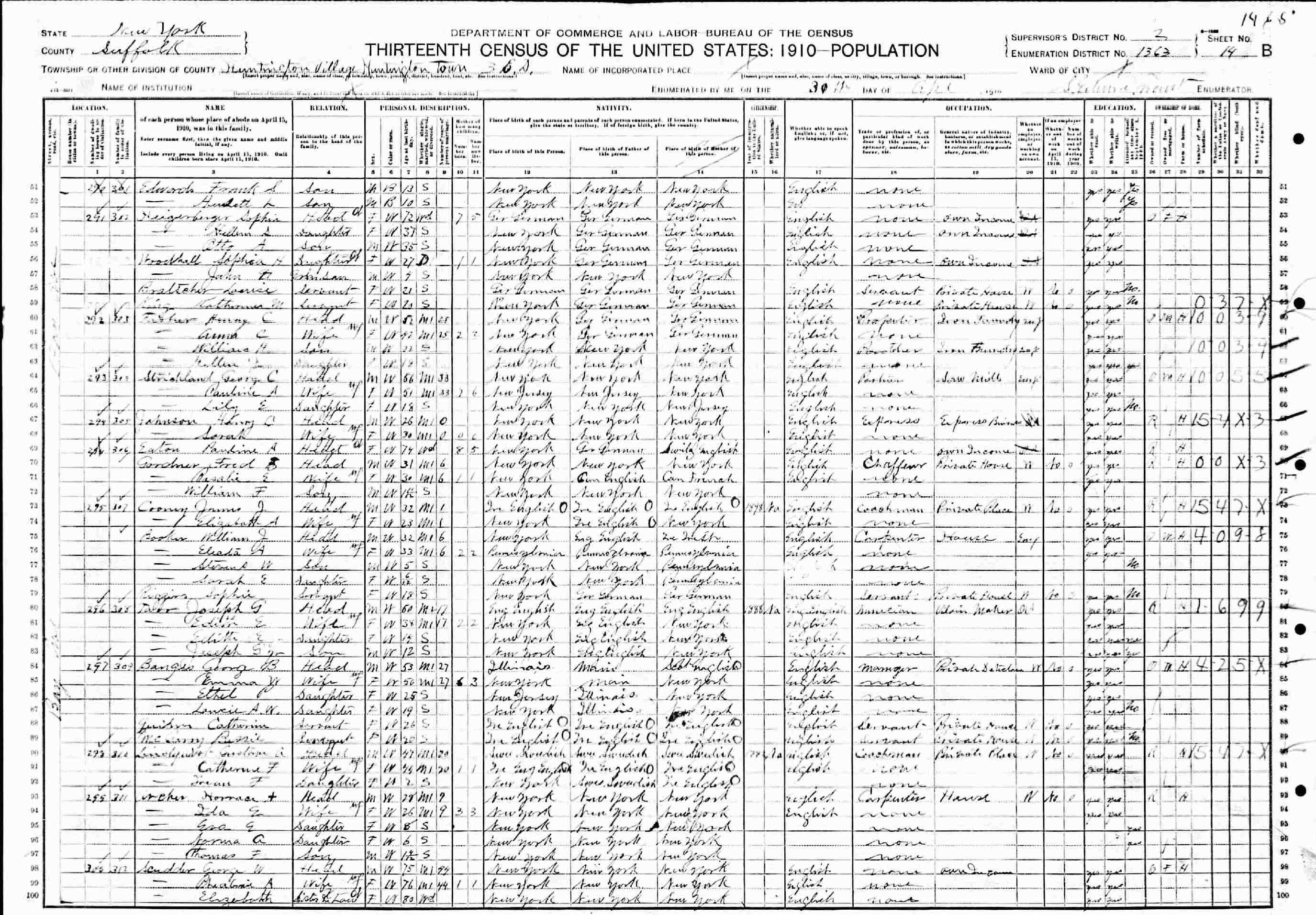 April 30, 1910 - Bay Avenue, Election District 3, Supervisor's District 2, Enumeration District 1363, Huntington Village, Huntington Town, Suffolk County, New York.