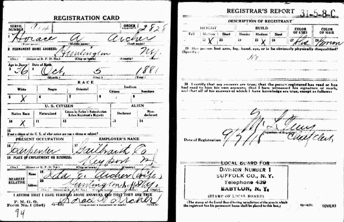 June 7, 1918 - WWI Draft Registration Date.