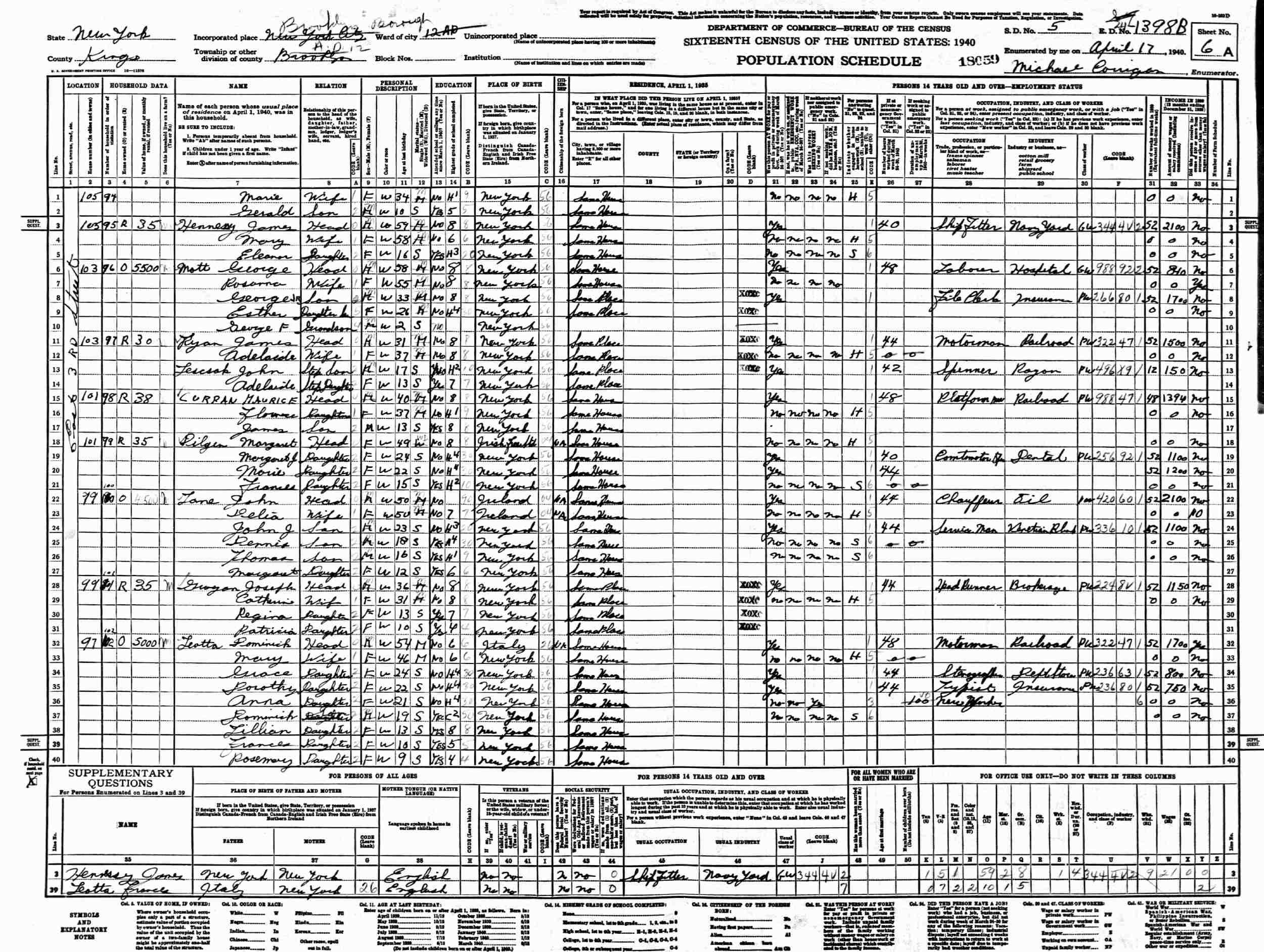 April 17, 1940 - 101 East 3rd Street, Assembly District 12, Supervisor's District 5, Enumeration District 24-1398B, Brooklyn, Kings County, New York.