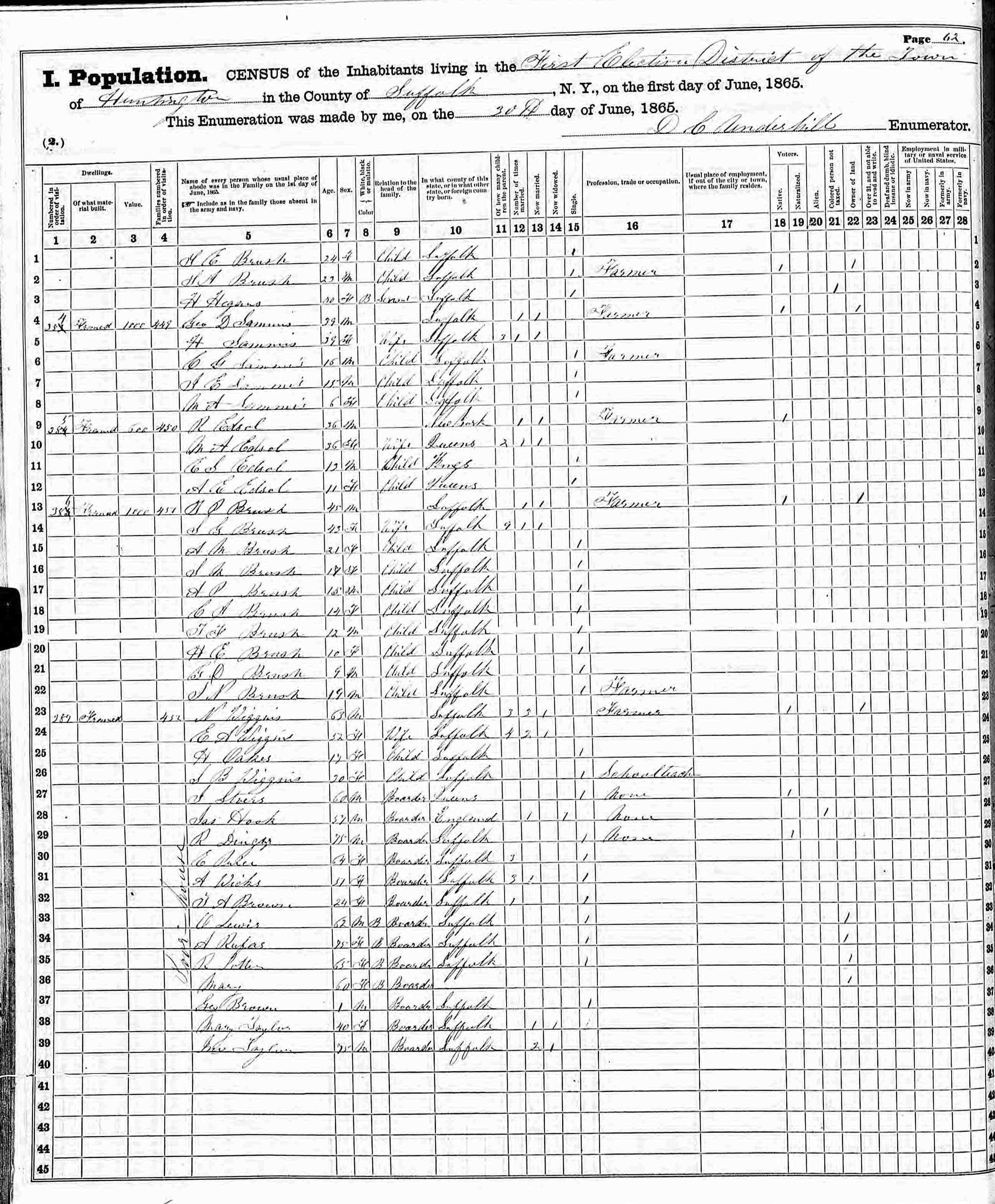 June 30, 1865 - New York State - Election District 1, Huntington, Suffolk County, New York.