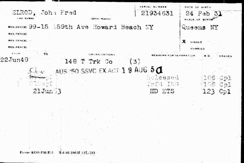June 22, 1949 - Enlistment Date - New York National Guard - Howard Beach, Queens County, New York.