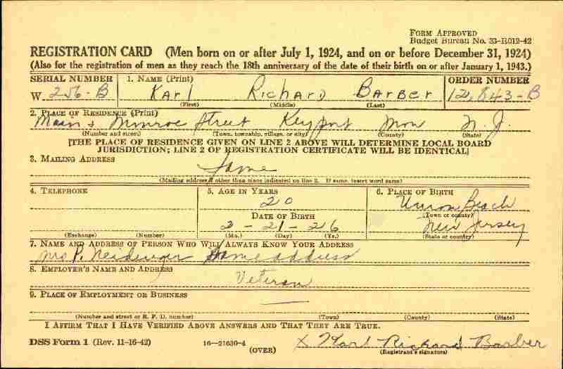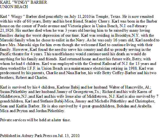 Notes for KARL RICHARD "WINGY" BARBER: