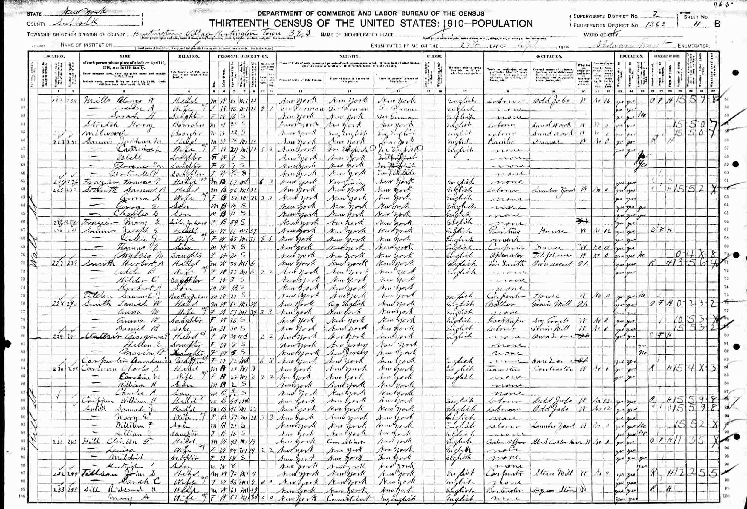 April 27, 1910 - Wall Street, Election District 3, Supervisor's District 2, Enumeration District 1363, Huntington, Suffolk County, New York.