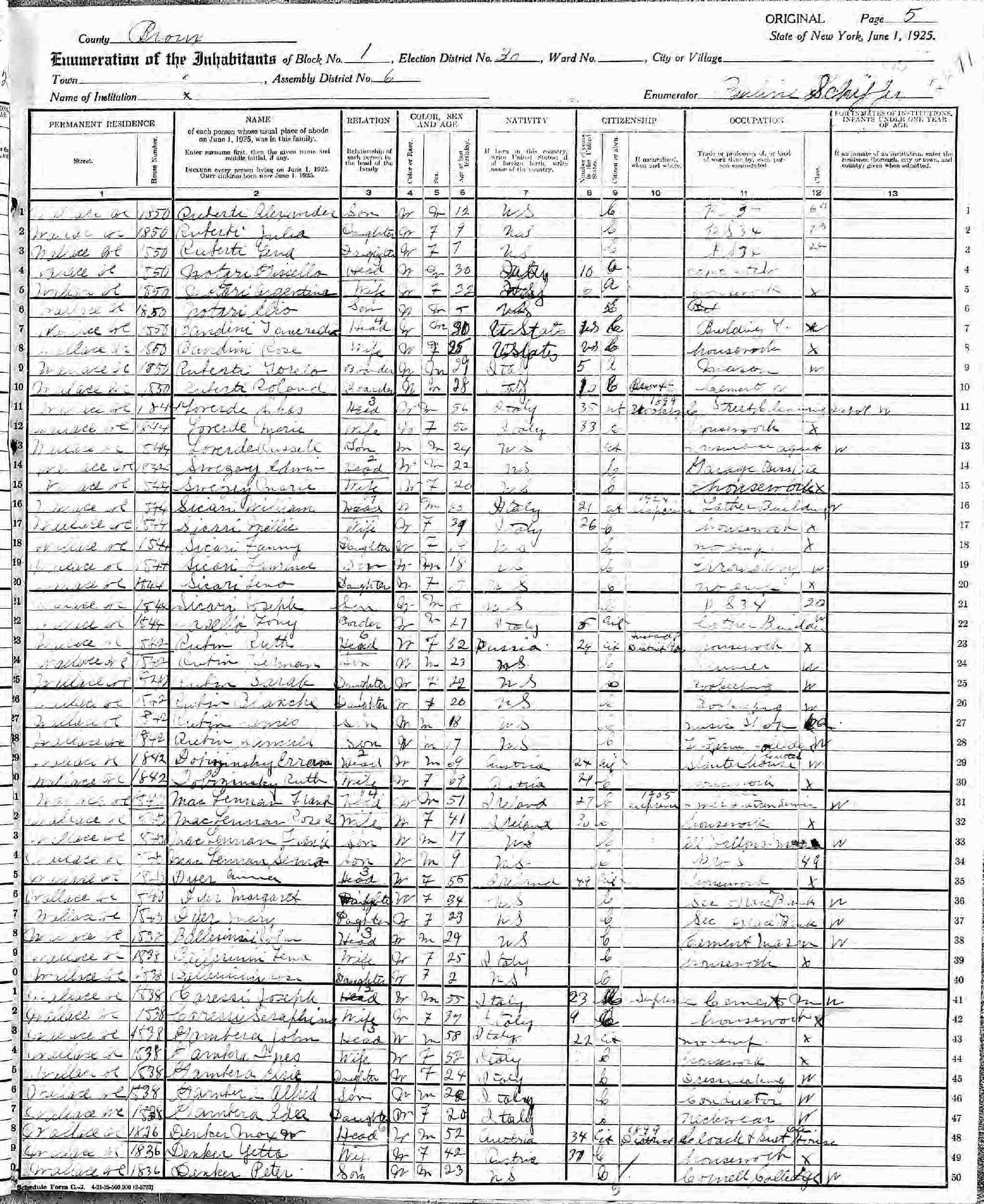 June 1, 1925 - New York State - 1844 Wallace Avenue, Block 1, Assembly District 6, Election District 30, Bronx, New York.