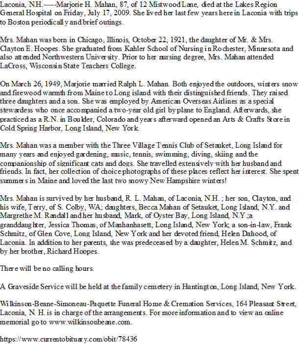 Died: July 17, 2009 in Lakes Region General Hospital, Laconia Belknap County, New Hampshire.