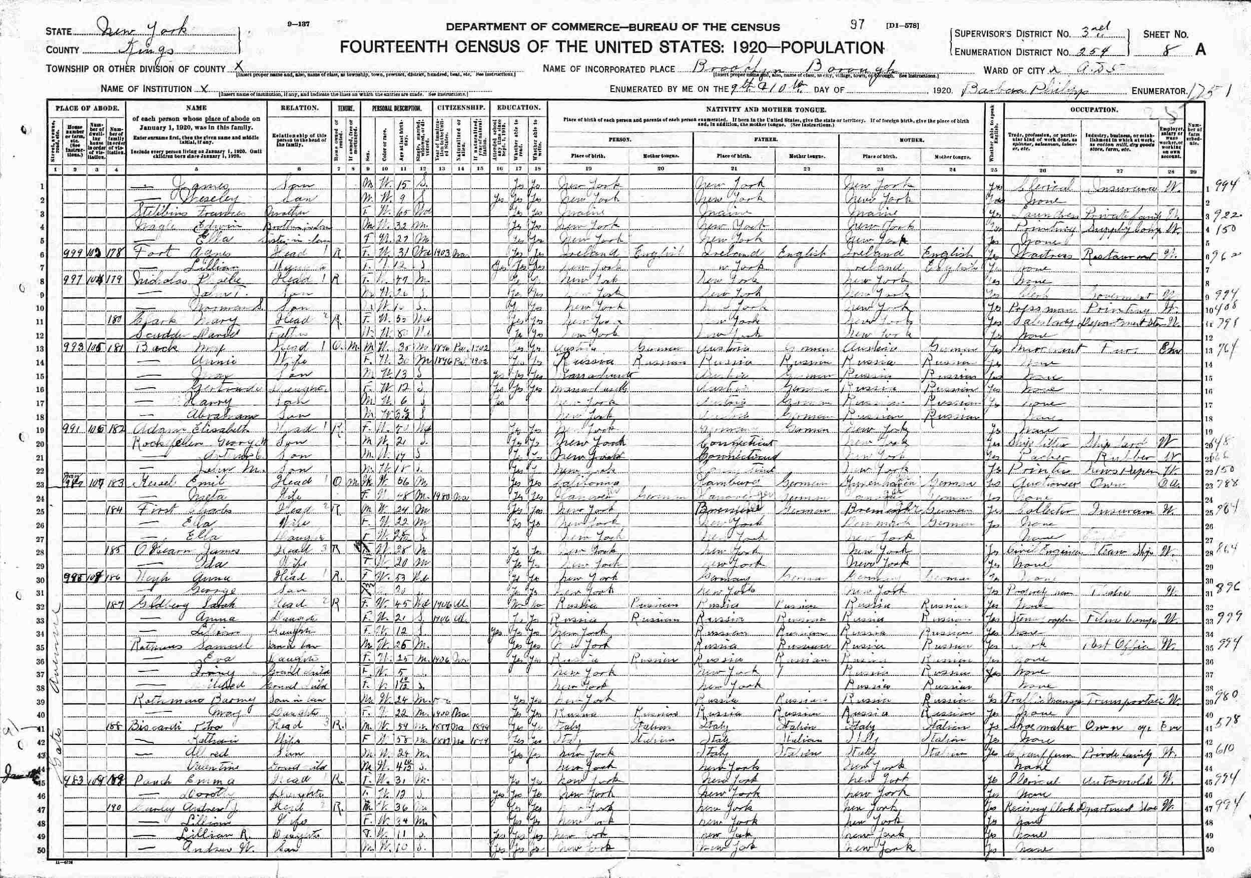 January 9-10, 1920 - 997 Gates Avenue, Assembly District 5, Supervisor's District 3, Enumeration District 254, Brooklyn, Kings County, New York.