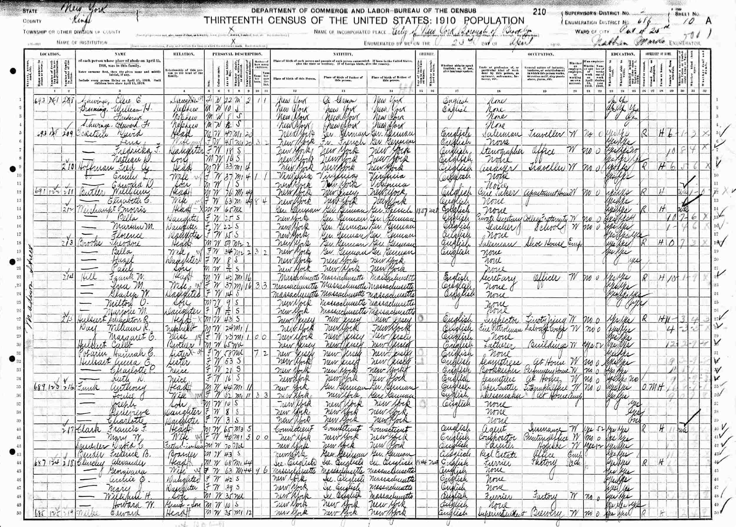 April 23, 1910 - 689 Madison Street, Ward 25, Supervisor's District 2, Enumeration District 616, Brooklyn, Kings County, New York.