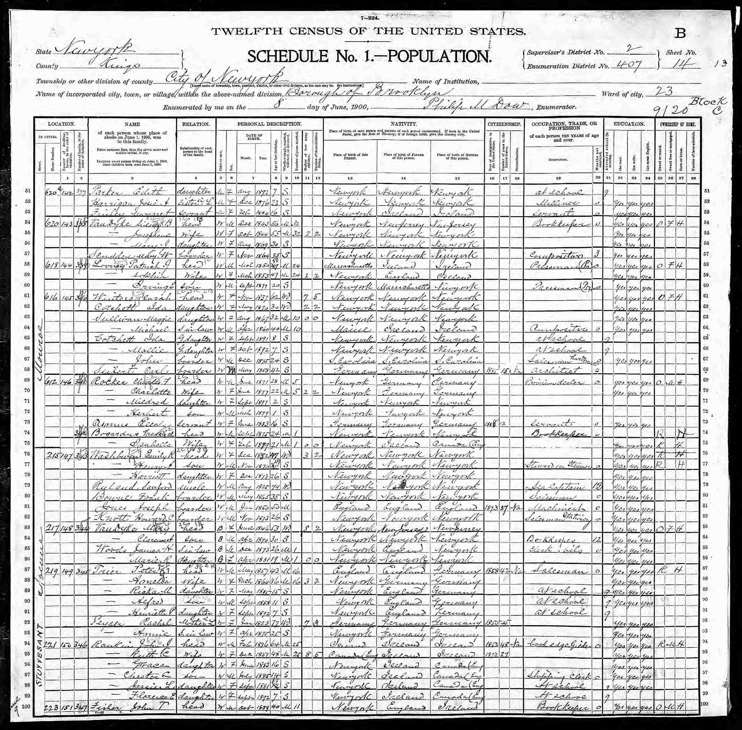 June 8, 1900 - 620 Monroe, Block C, Ward 23, Supervisor's District 2, Enumeration District 407, Brooklyn, Kings County, New York.