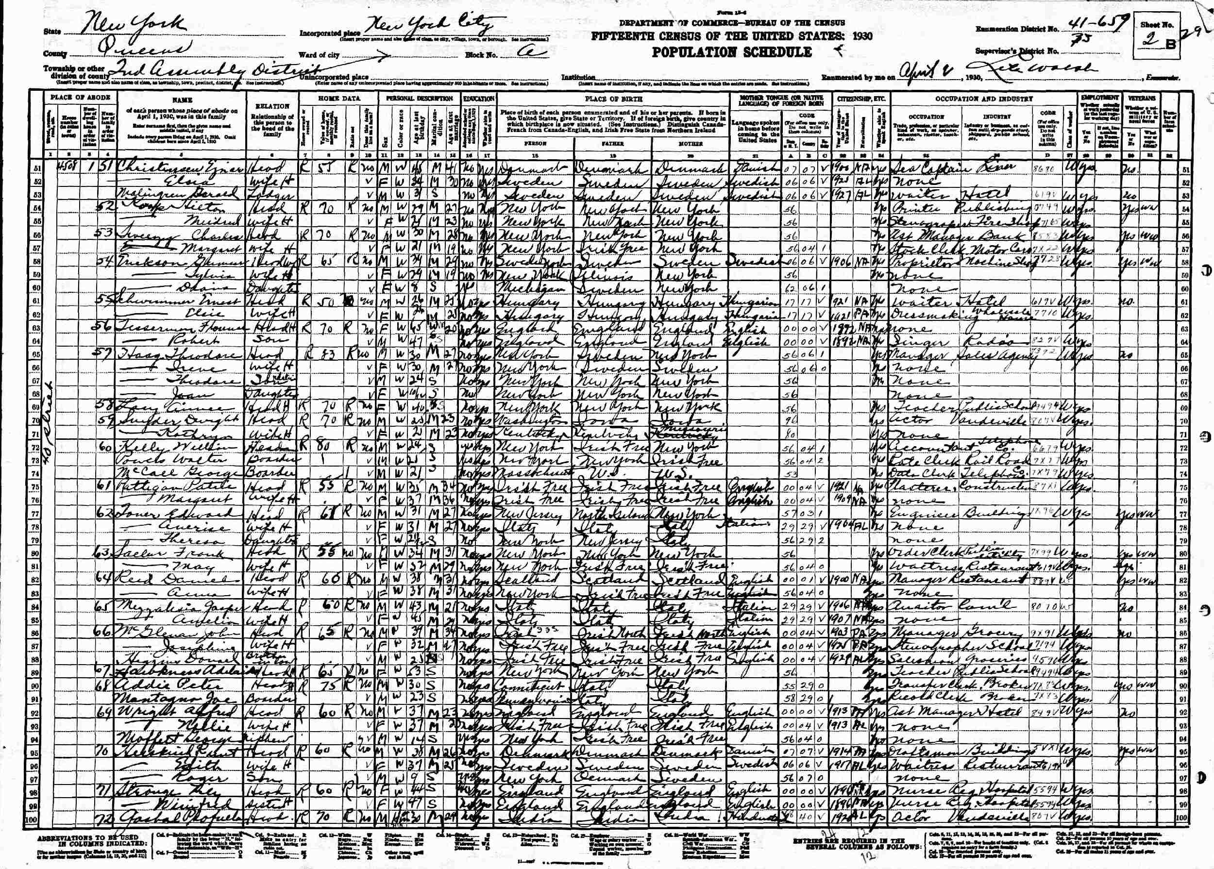 April 2, 1930 - 4508 40th Street, Assembly District 2, Block A, Supervisor's District 35, Enumeration District 41-659, New York City, Queens County, New York.