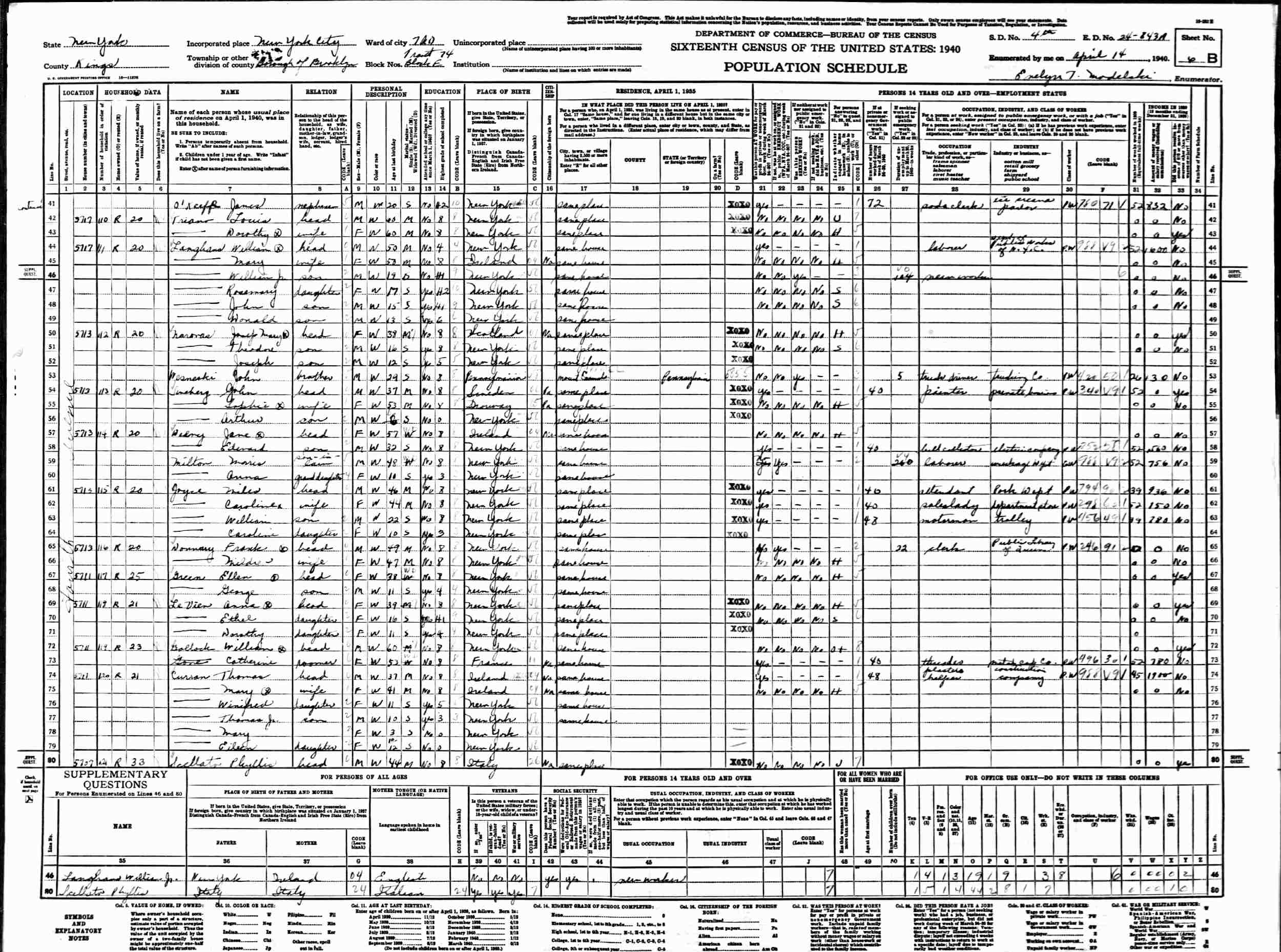 April 11, 1940 - 5713 Fourth Avenue, Ward 70, Block E, Tract 74, Supervisor's District 4, Enumeration District 24-843A, Brooklyn, Kings County, New York.