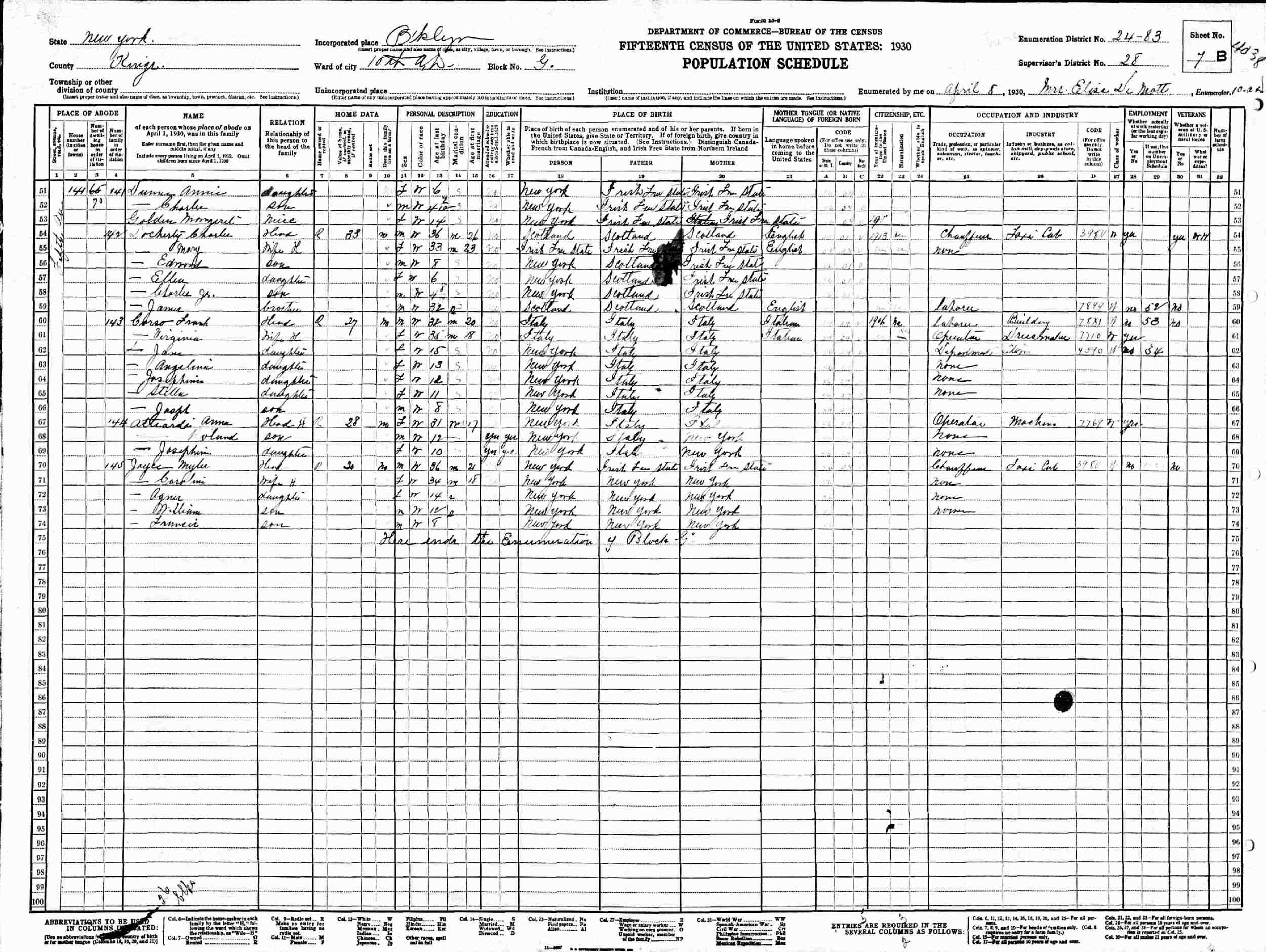 April 8, 1930 - 144 Fifth Avenue, Assembly District 10, Block G, Supervisor's District 28, Enumeration District 24-83, Brooklyn, Kings County, New York.