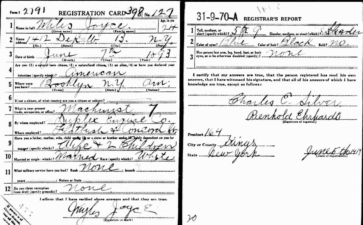 June 5, 1917 - 1412 DeKalb, Brooklyn, Kings County, New York.