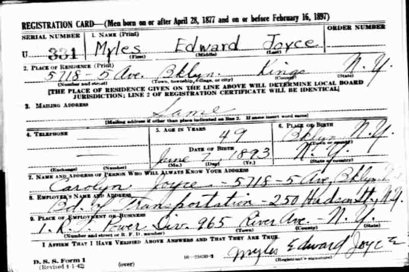 Son of Edward and Catherine "Kate" L (McNamara) Joyce.