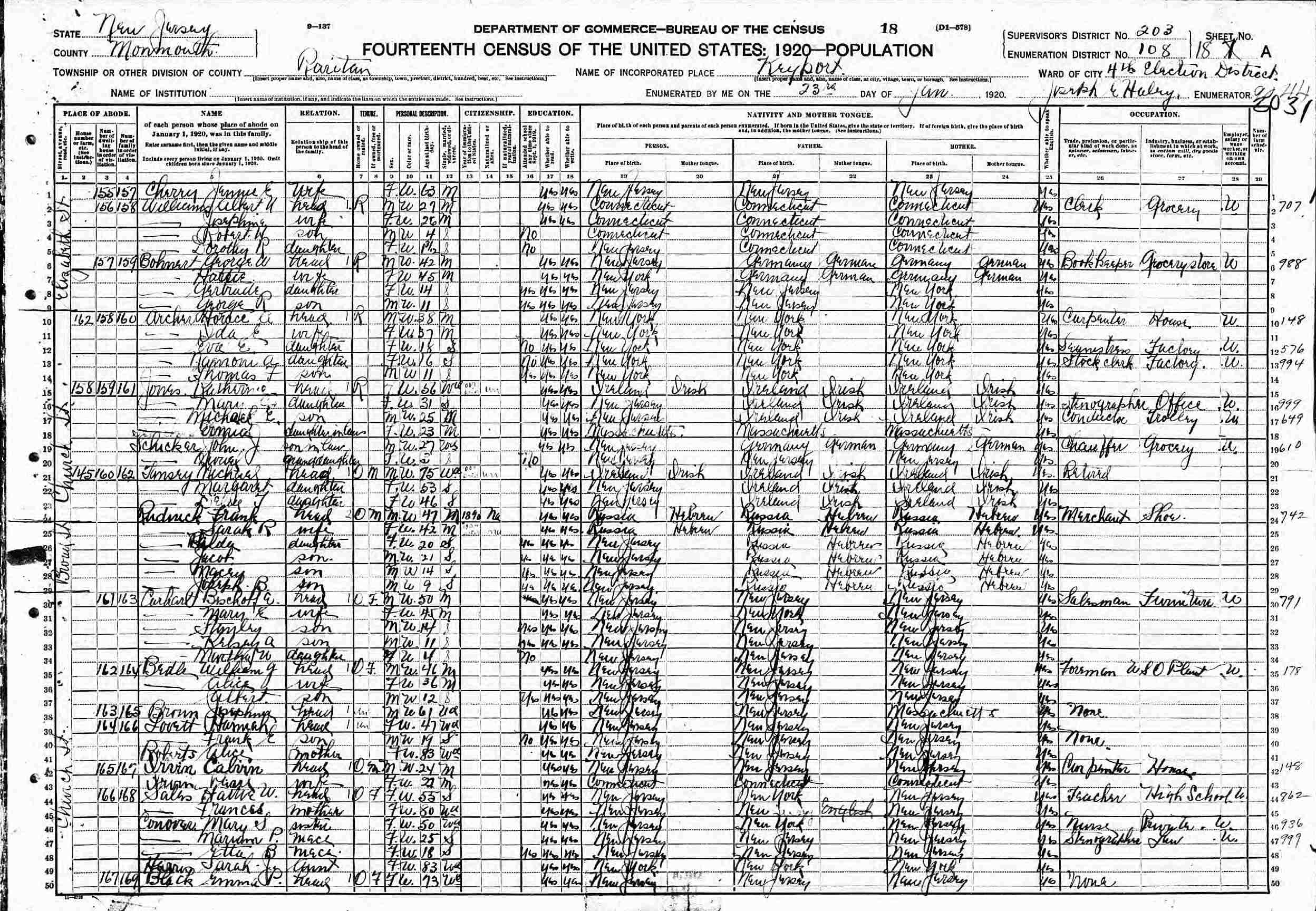 January 23, 1920 - 162 Church Street, Election District 4, Supervisor's District 203, Enumeration District 108, Keyport, Raritan, Monmouth County, New Jersey.