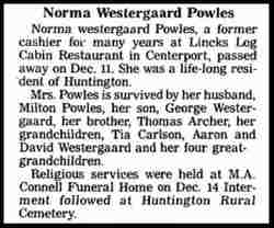 Notes for NORMA A ARCHER WESTERGAARD POWLES: