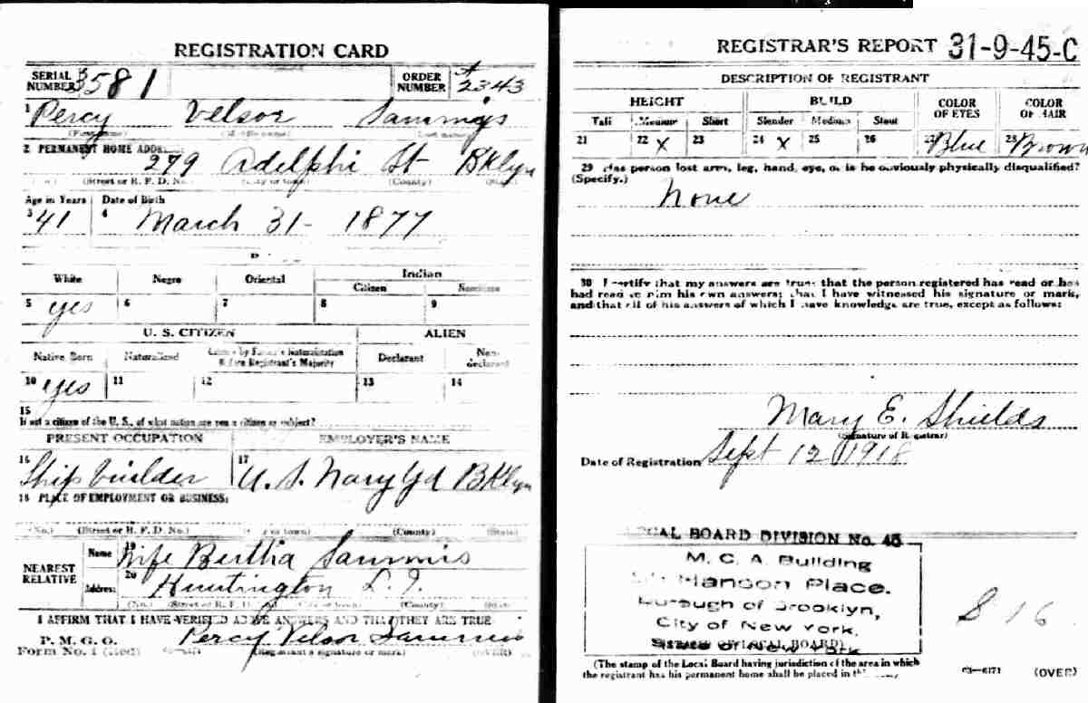 Notes for PERCY VELSOR SAMMIS: