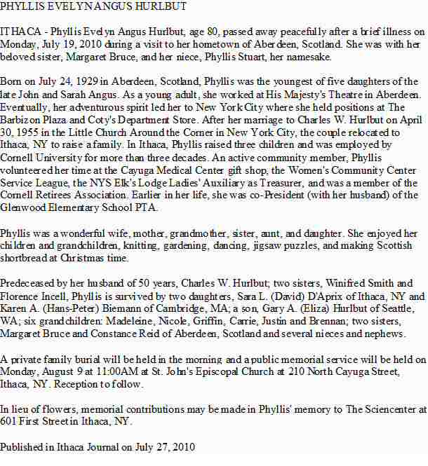 Notes for PHYLLIS EVELYN ANGUS HURLBUT:
