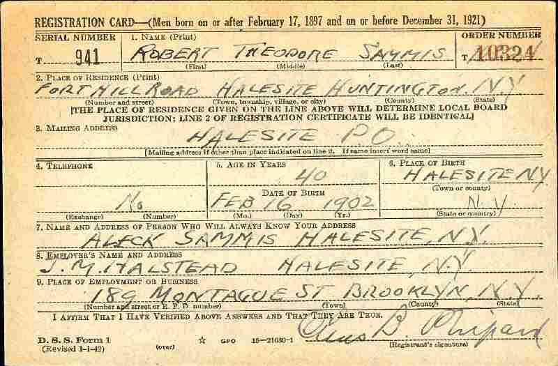 Born: February 16, 1902 in Halesite, Huntington, Suffolk County, New York.