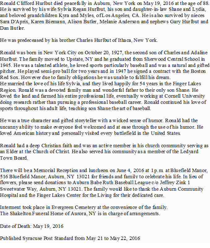 Notes for RONALD CLIFFORD HURLBUT: