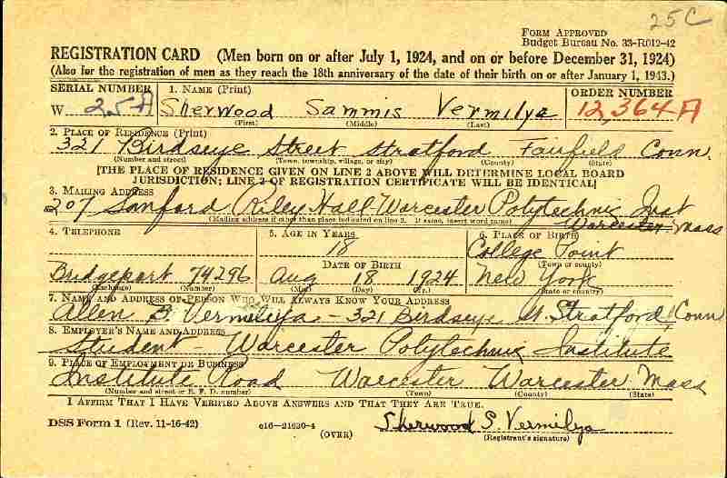December 17, 1942 - Student, Worcester Polytechnic Institute.