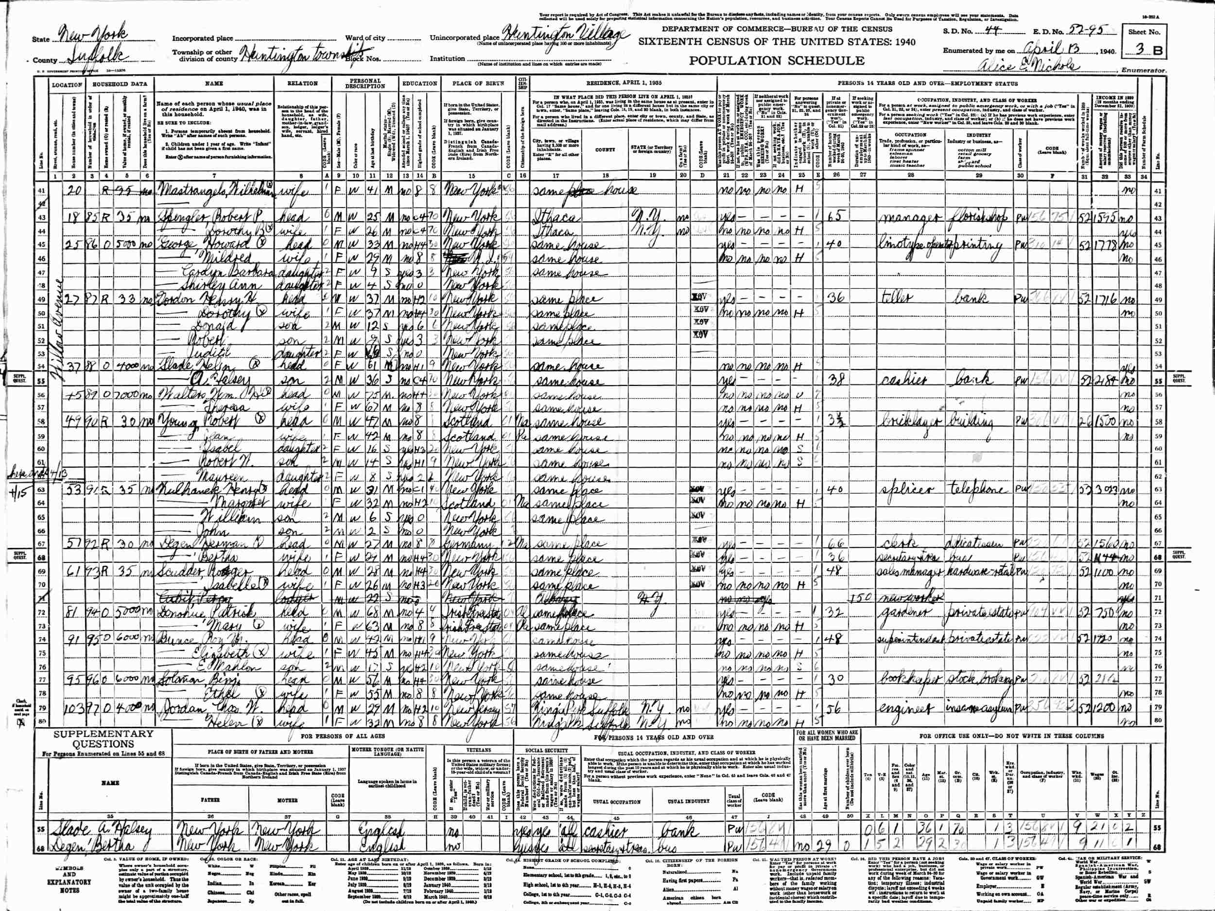 April 13, 1940 - 25 Willow Avenue, Supervisor's District 44, Enumeration District 52-95, Huntington Town, Huntington Village, Suffolk County, New York.
