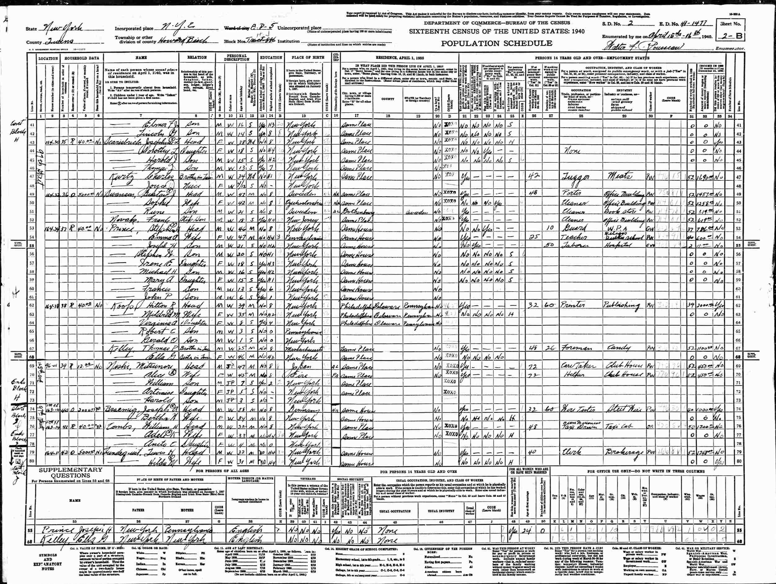April 15-16, 1940 - 164-38 9th Street, Assembly District 5, Blocks H-J, Supervisor's District 2, Enumeration District 41-1477, Howard Beach, New York City, Queens County, New York (w/brother-in-law and sister-in-law, Hilton and Mildred Koop).