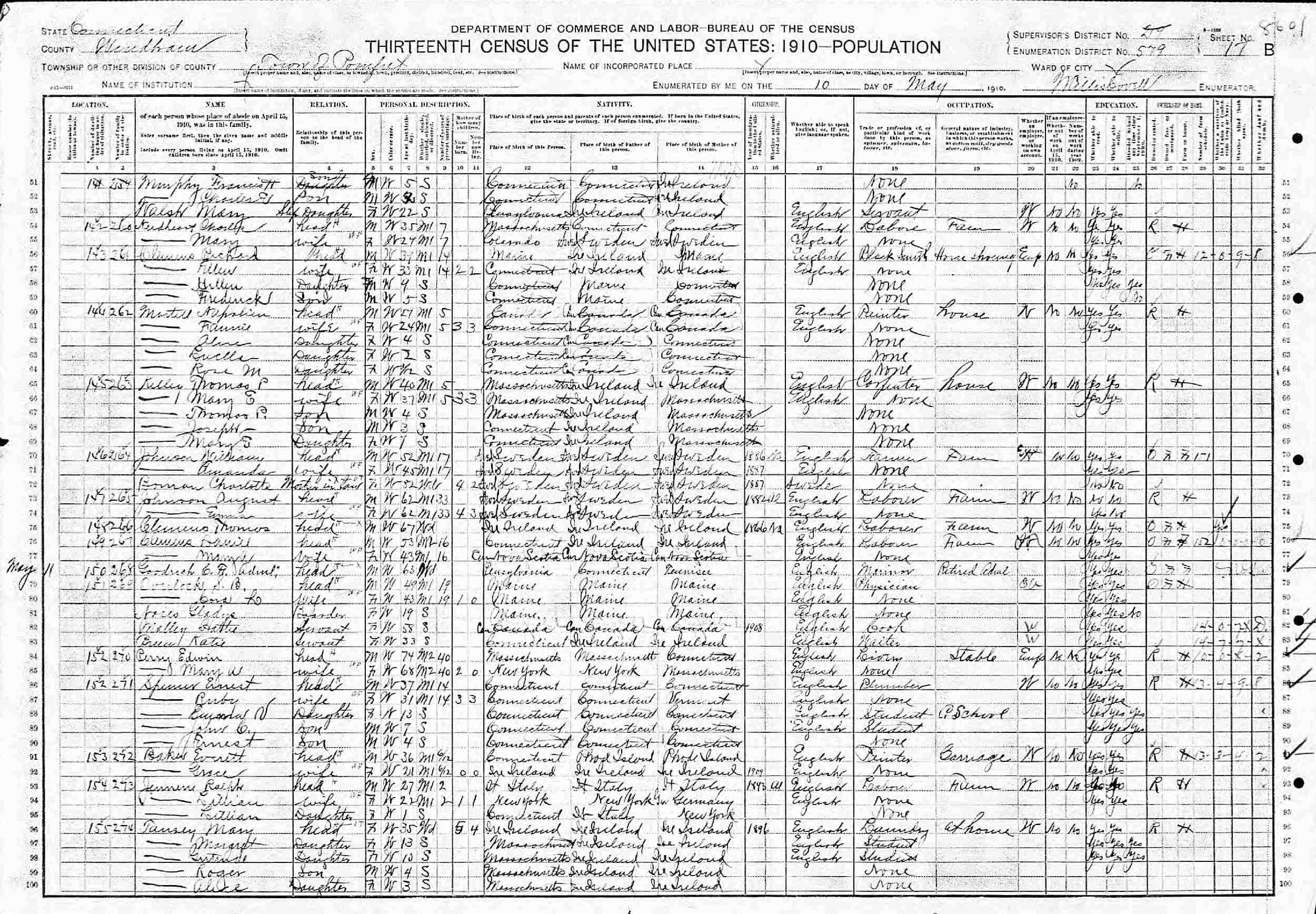 May 10, 1910 - Supervisor's District ?, Enumeration District 579, Pomfret, Windham, Connecticut.