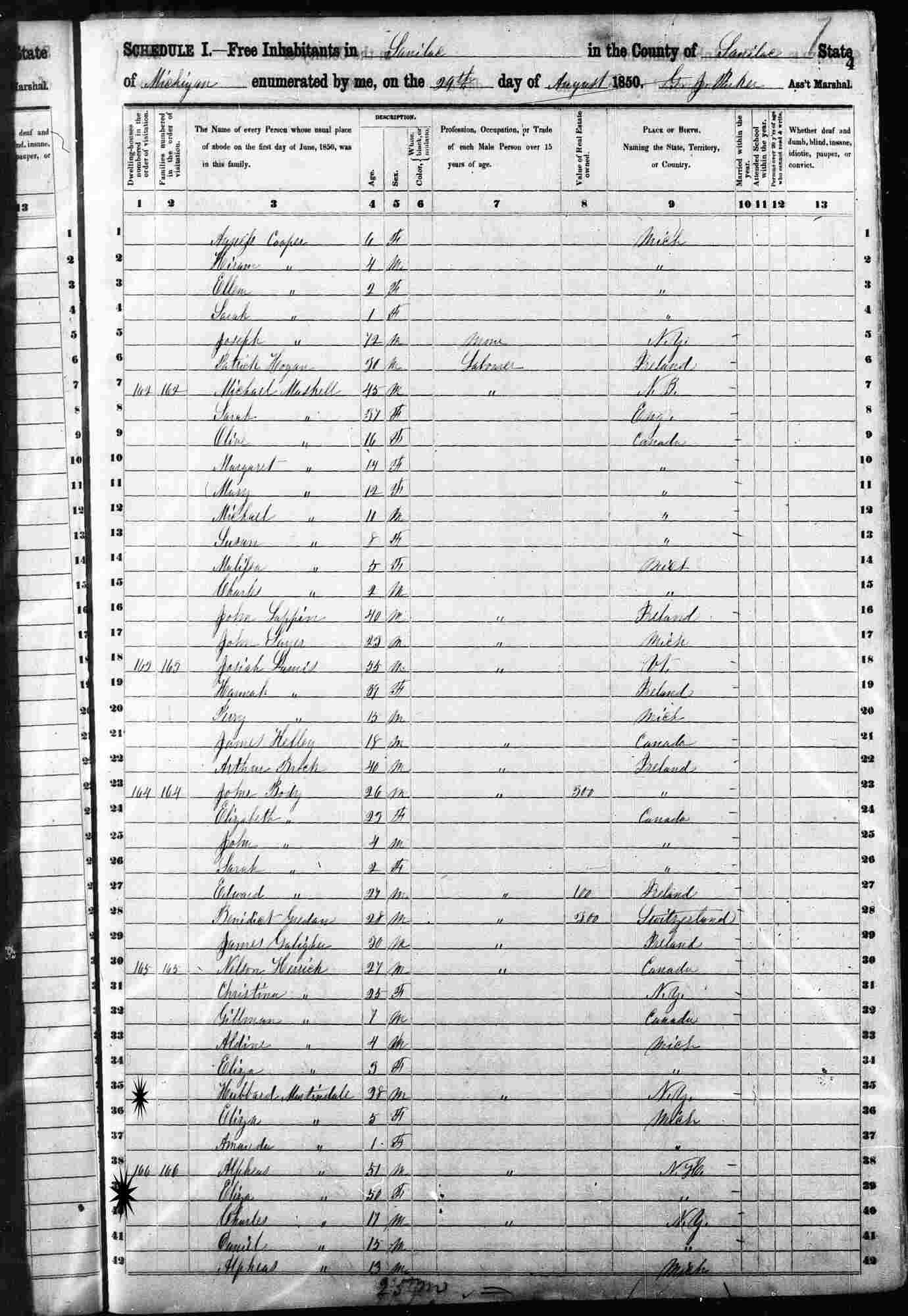 August 29, 1850 - Sanilac, Sanilac County, Michigan.