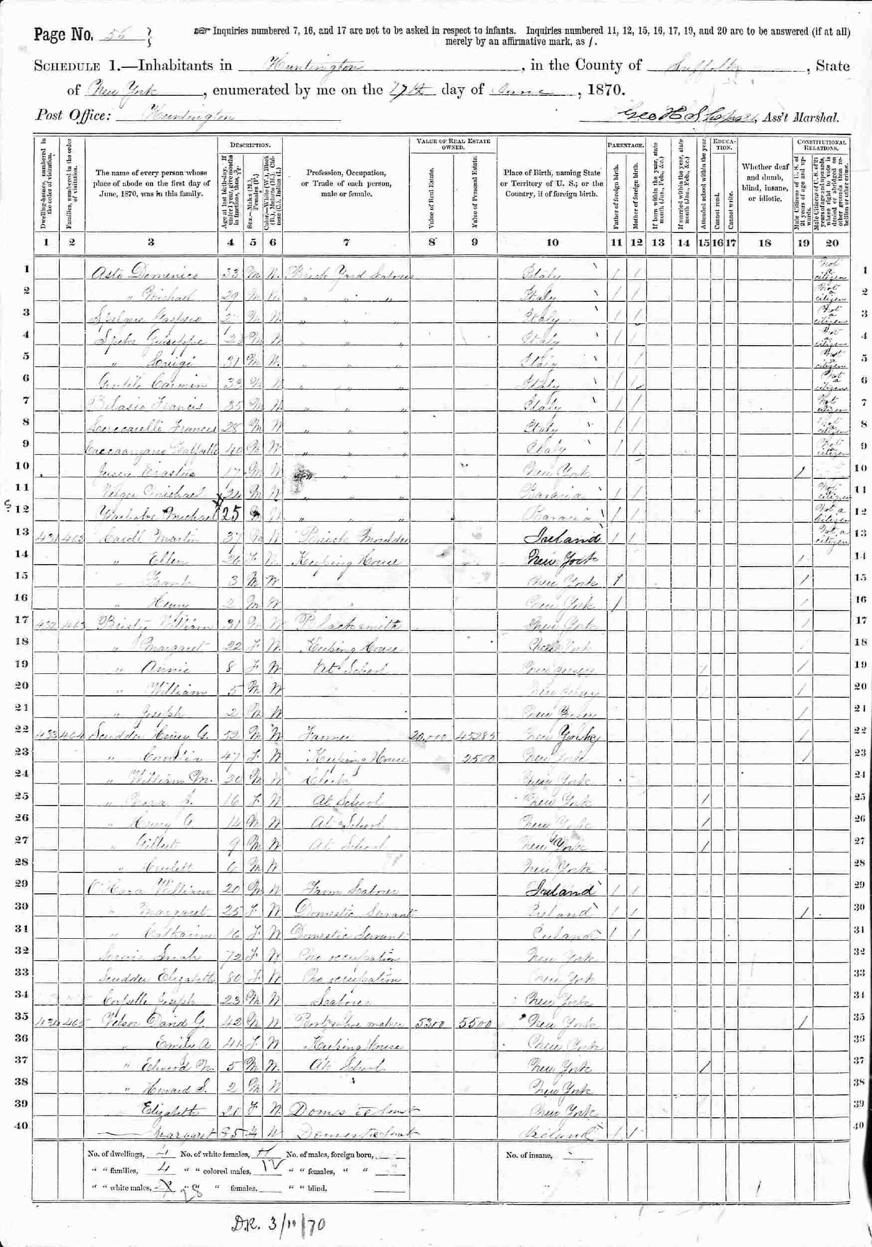 June 1, 1880 - Supervisor's District 2, Enumeration District 319, Huntington, Suffolk County, New York.