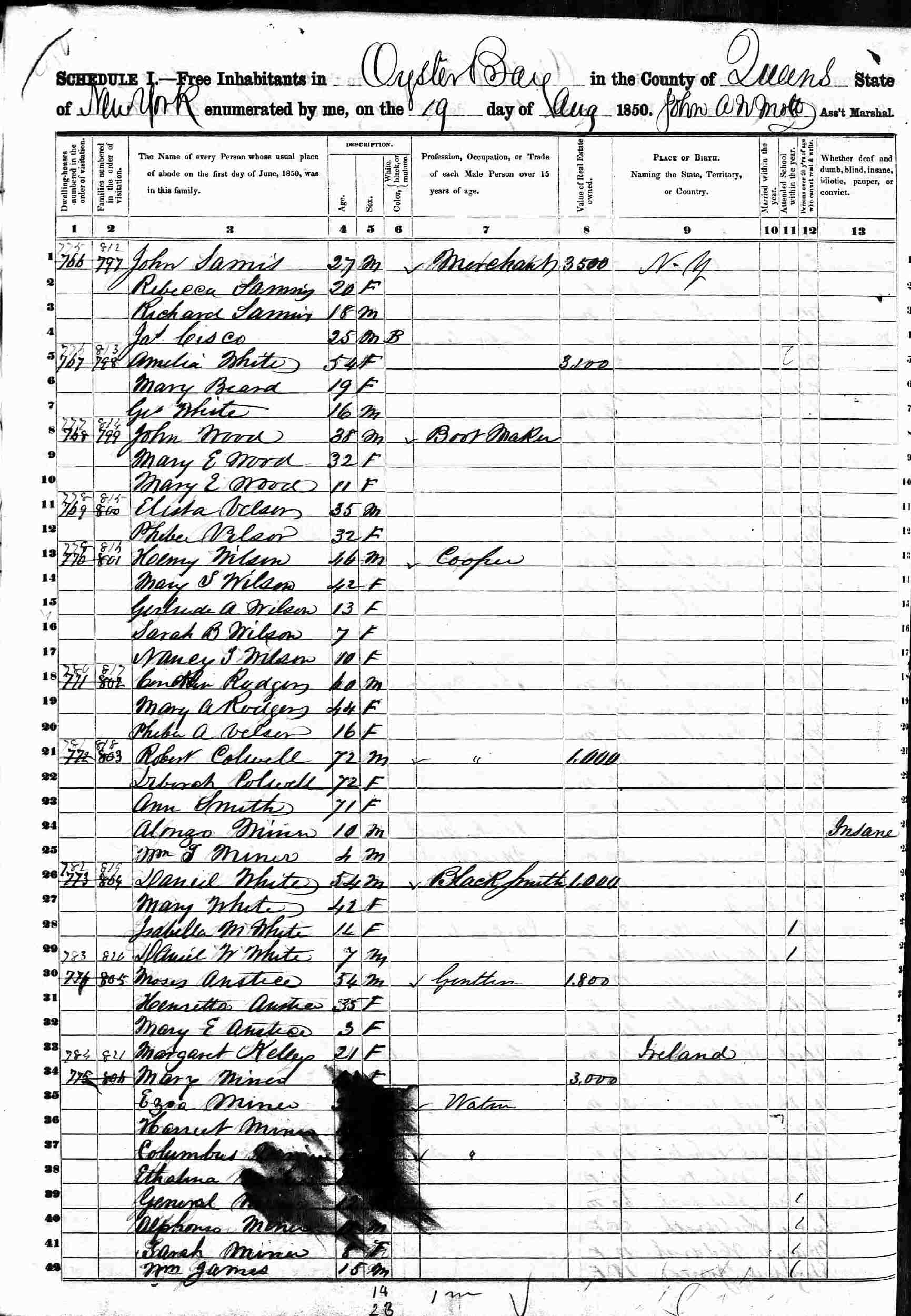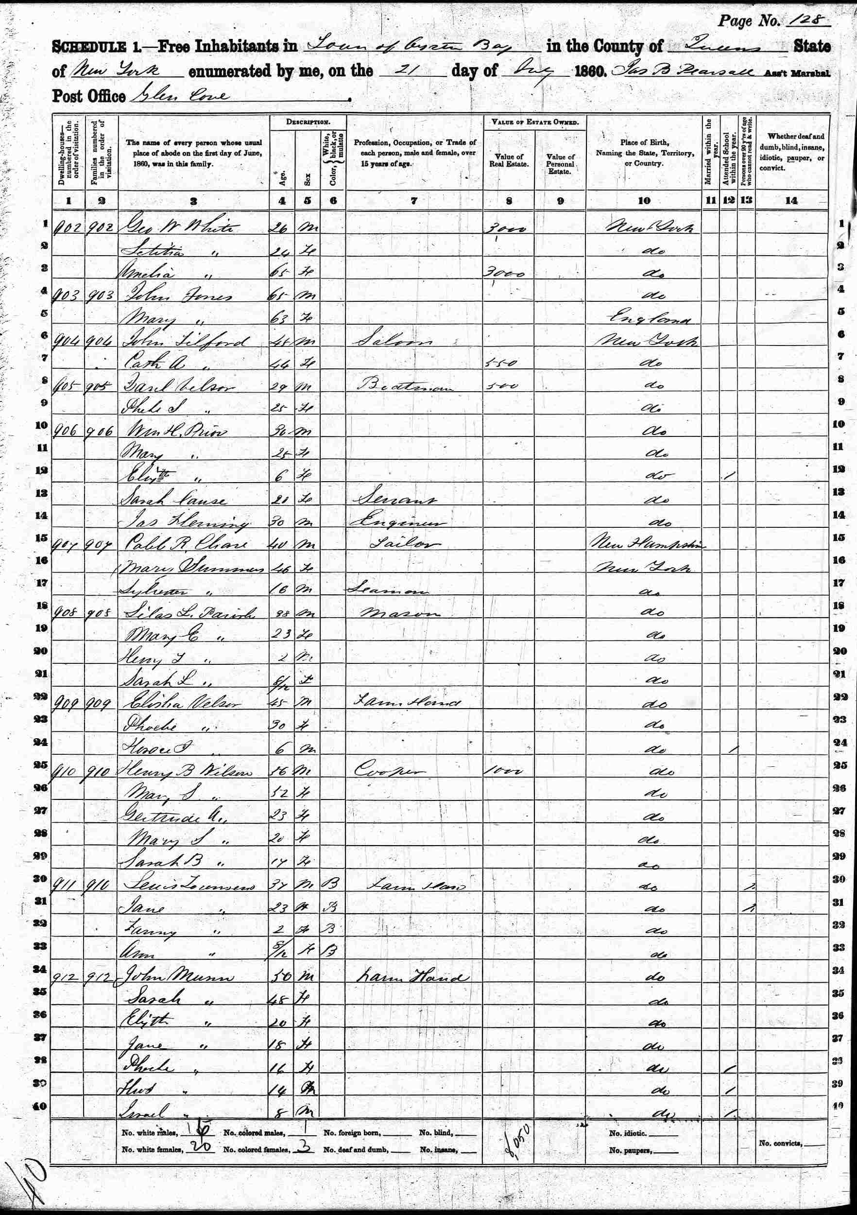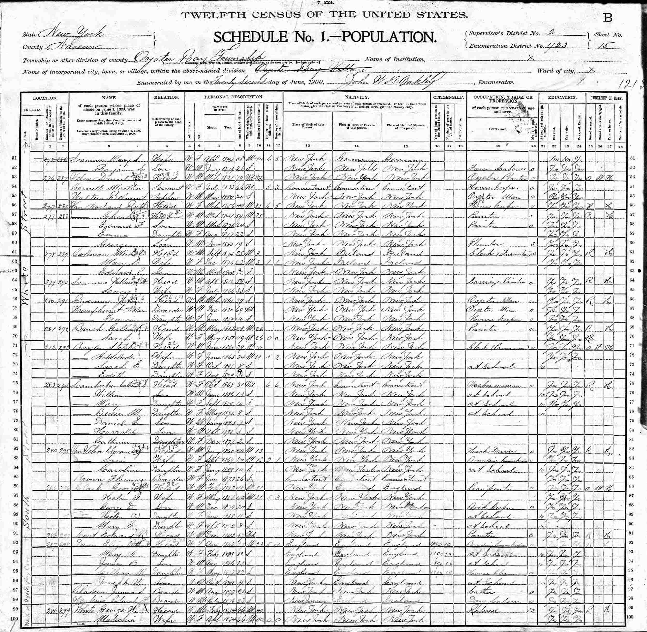 June 22, 1900 - White Street, Supervisor's District 2, Enumeration District 723, Oyster Bay Township, Nassau County, New York.