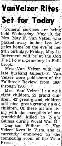 Notes for MAY EASTWOOD VAN VELZER:
