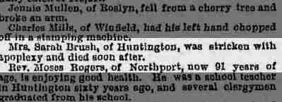 Died: July 9, 1884 in Huntington, Suffolk County, Long Island, New York.