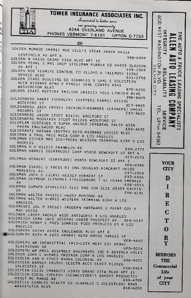(2) Henry Goldsmith July 20, 1936 in Los Angeles, Los Angeles County, California.